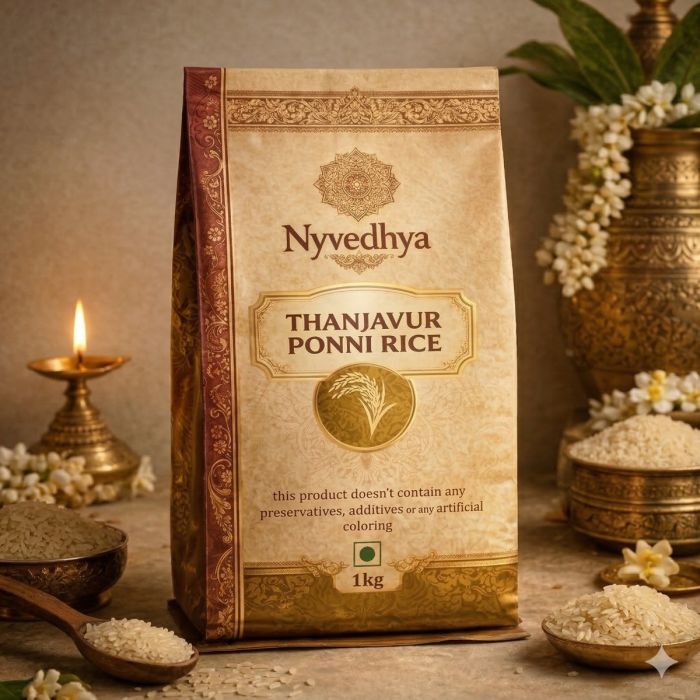 Our signature Thanjavur Ponni Rice is sourced from the fertile Cauvery delta. Known for its beautiful aroma and fluffy texture, this premium variety is perfect for everyday meals. Naturally grown without pesticides or chemicals.